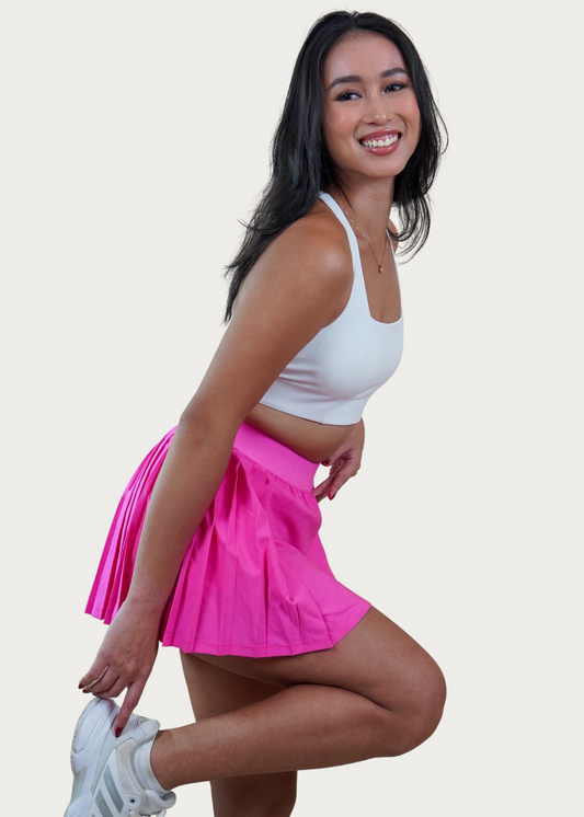 VARSITY SKIRT IN ELECTRIC PINK